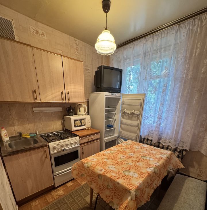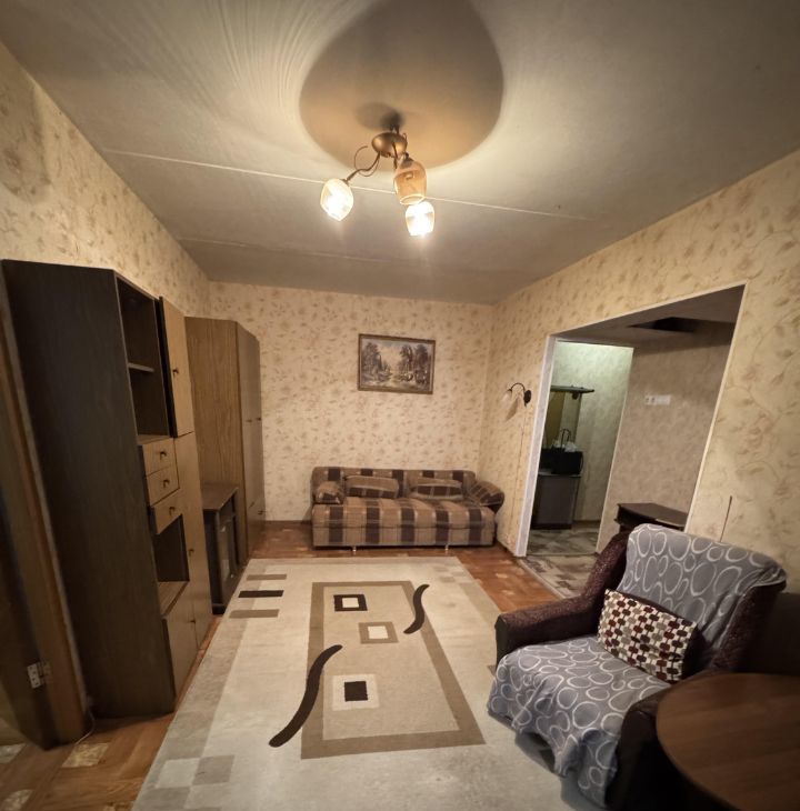 Сдаётся уютная двухкомнатная квартира на время продажи. В квартире комнаты смежные. Курение запрещено, проживание с детьми и животными также не допускается. В гостиной установлен диван и вместительный шкаф. Из мебели есть обеденный стол и стулья, а также телевизор. В кухне имеется вся необходимая бытовая техника, включая холодильник и микроволновую печь. Также предусмотрена стиральная машина. Санузел совмещённый, оборудован ванной и стиральной машиной. В квартире доступен интернет через Wi-Fi. Дом кирпичный, что обеспечивает хорошую тепло- и звукоизоляцию. Парковка открытая во дворе. Балкон добавляет дополнительное пространство для отдыха.