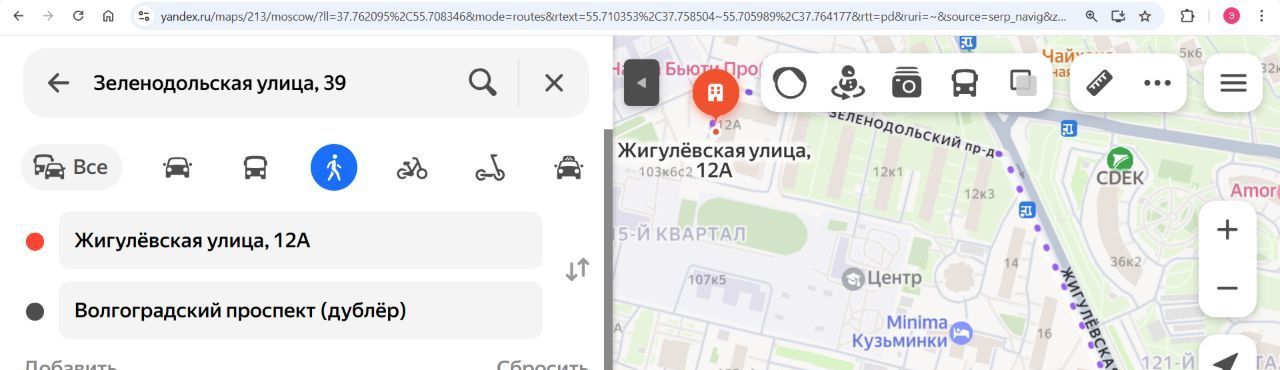 До метро 9 минут пешком (по Яндекс-картам).