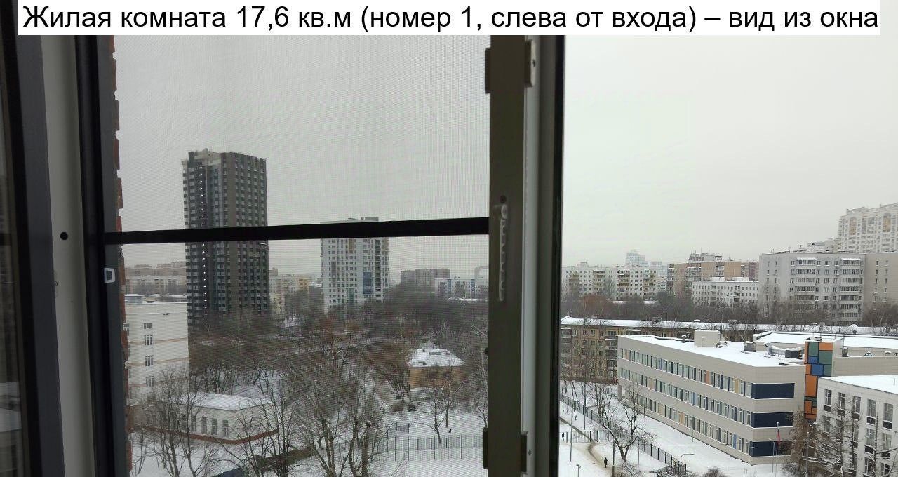 Окна комнаты слева выходят на запад (школа, спортивная площадка; 180 метров до подлежащей сносу 5-этажки - на её месте планируется спортивная площадка и озеленение).