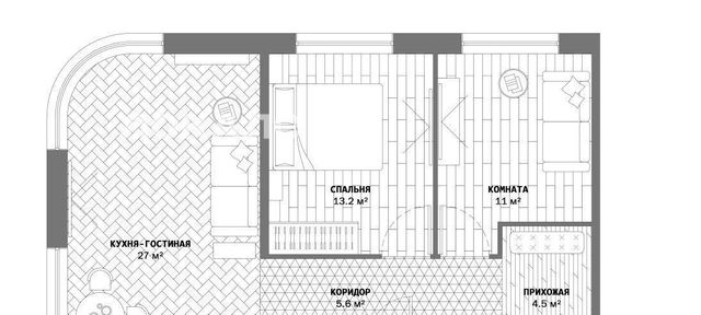 - ДВЕ отдельные комнаты + кухня гостиная 27 кв.м.!!