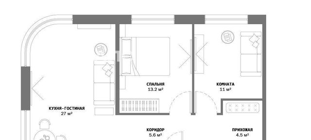 - ДВЕ отдельные комнаты + Большая кухня-гостиная 27 кв.м.!!