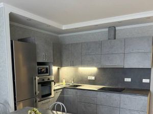 Отличная квартира студийного плана с изолированной спальней. Качественный ремонт, добротная мебель и бытовая техника. Посуда, постельные принадлежности. В спальне двухспальная кровать, прикроватные тумбы, комод,шкаф,телевизор. Гардеробная. Санузел