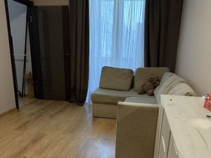 В квартире большая кухня (11 кв м), 2 комнаты, застекленная лоджия, гардеробная, 2 отдельных санузла, встроенные шкафы, обогреваемые полы (санузлы, коридор, балкон), водонагреватель, кондиционер, 2 телевизора, совершенно новая техника (посудомойка, стиральная машина, холодильник, духовой шкаф, электроплита, вытяжка), диван.