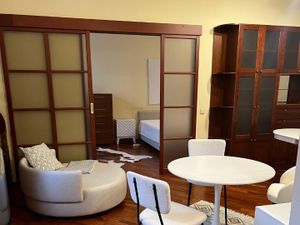 В аренду предлагается светлая уютная двухкомнатная квартира студийного плана с дизайнерским ремонтом и обстановкой, в малоквартирном КЛУБНОМ ДОМЕ с подземным и наземным паркингом, в арбатских переулках. Г.Москва, Трубниковский переулок, дом 30.