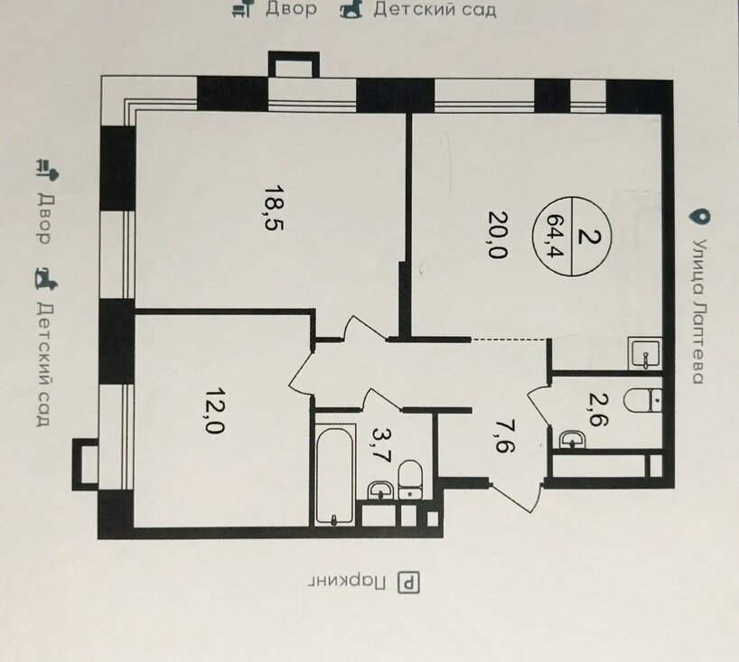 2-комнатная квартира: Московский, улица Лаптева, 7 (64.4 м²)