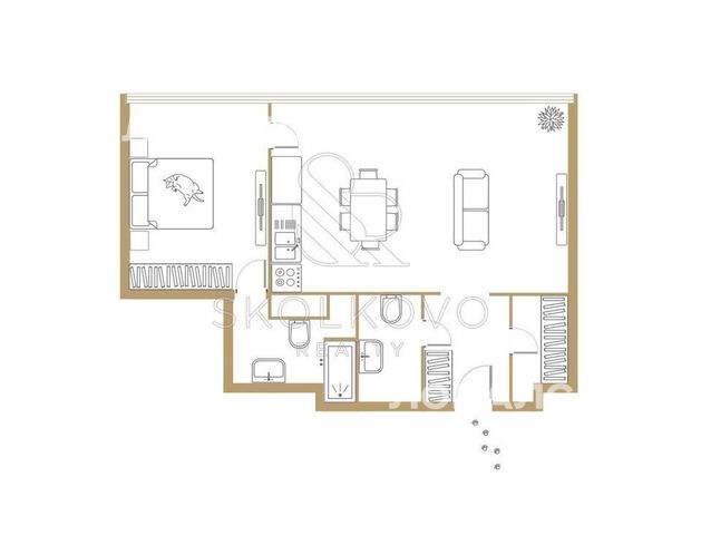 Планировка: спальная комната, кухня совмещенная с гостиной ,ванная комната. В спальне двуспальная KING-size кровать .Ванная комната выполнена в современном и необычном цветовом решении.