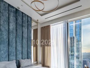 Новые апартаменты класса люкс с видом на закат, на 48 этаже, апартамент включает себя просторную гостиную 35 метров с кухней , удобным диваном , домашним кинотеатром, большим столом  и изолированную спальню с двухспальной кроватью, а также санузом и тропическим душем axor.