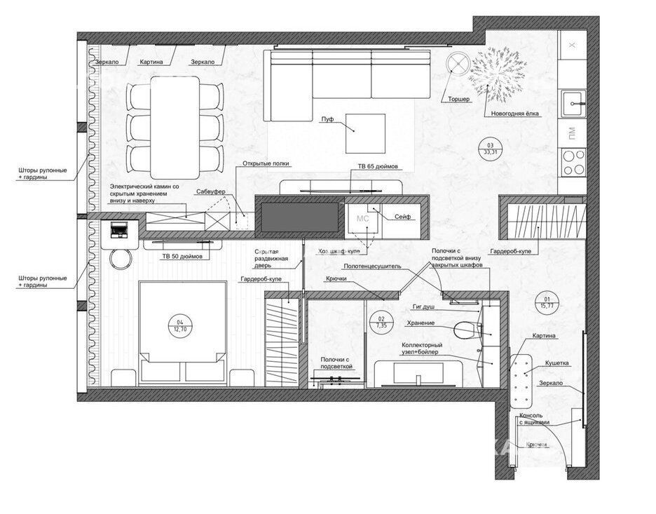 -Телевизор 55 дюймов в спальне и саундар в душевой.