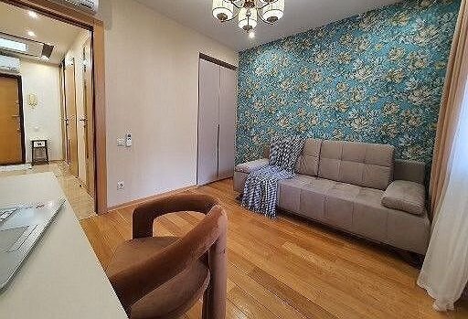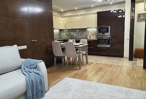 Современный дизайнерский ремонт, полностью меблирована и оборудована премиальной техникой: холодильник, посудомойка, духовой шкаф, варочная панель, стиральная машина, кондиционеры во всех комнатах.