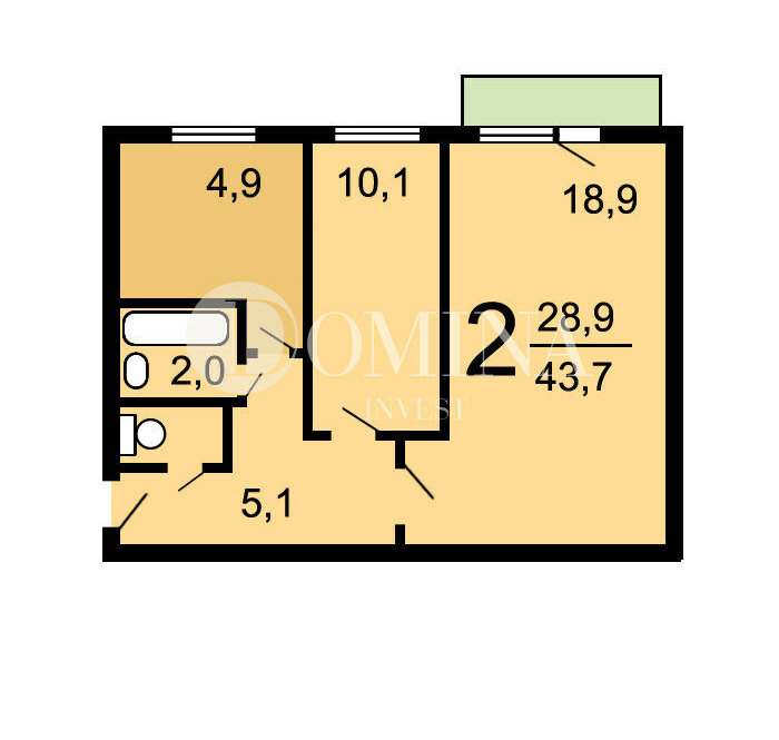 2-комнатная квартира: Москва, 1-й Зборовский переулок, 11 (43.7 м²)