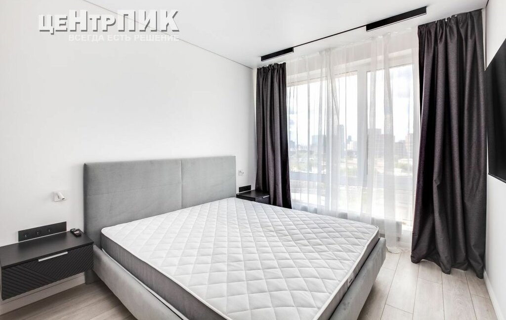 Кухня-гостиная, изолированная спальня с гардеробной. Панорамные окна обеспечивают максимум света, солнца и воздуха. Окна направлены на юго-запад с отличным видом на Москва-Сити и "Сердце столицы".