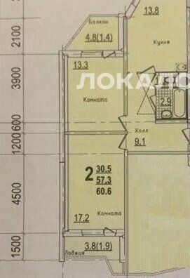Общая площадь 60,6 м.кв. Спальня с балконом 17.2 м.кв., и зал 13 м.кв., увеличен за счет лоджии до 18 кв.м.