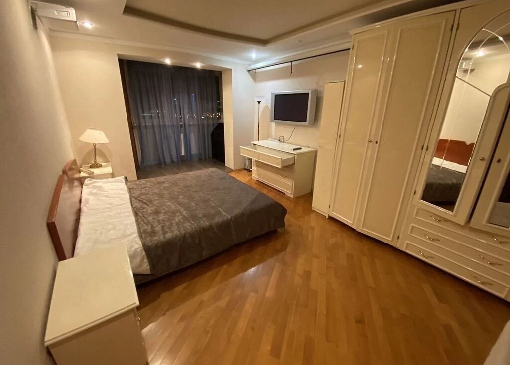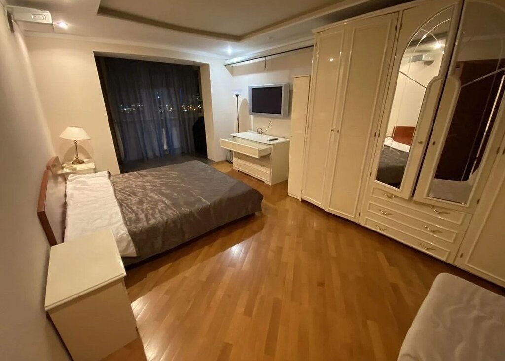 В квартире сделан евро ремонт с перепланировкой, сделана в стили студия ,поэтому квартира имеет одну большую спальню обеденную с балконам!