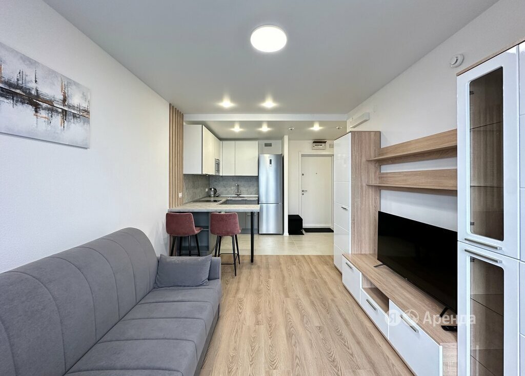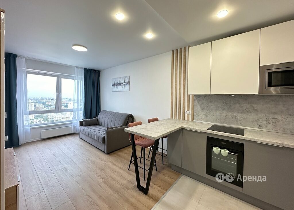 Сдаётся 2-комнатная квартира площадью 36 кв.м. с евроремонтом на 33 этаже в 33-этажном доме на срок от 11 месяцев. Из техники есть: