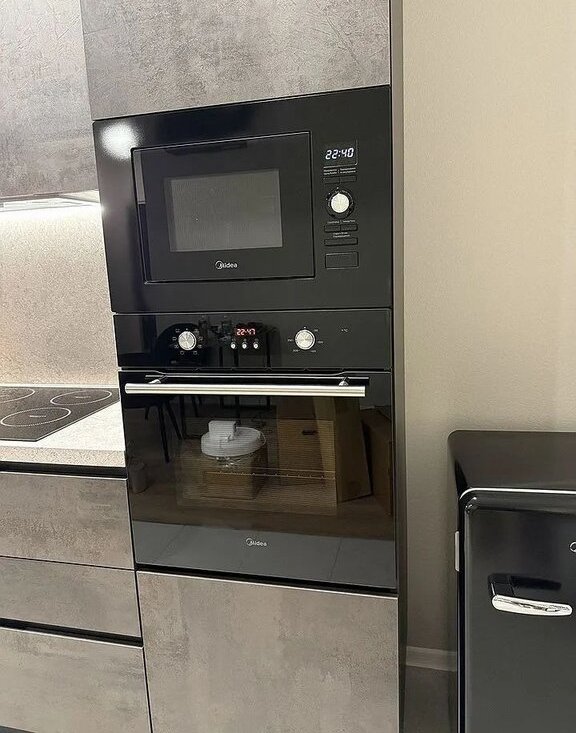 Есть всё необходимое для проживания: кровать, кухня с мини-холодильником, стиральная машина, посудомоечная машина, плита, духовка, микроволновка, посуда на двоих людей, кондиционер, сушилка для одежды, пылесос, wi-fi, две напольные вешалки в спальне, 1 напольная вешалка в коридоре.