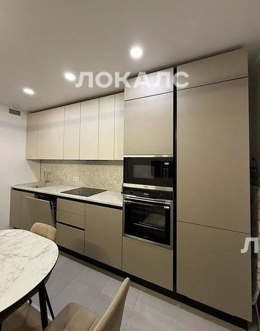 Полностью встроенная техника на кухню: холодильник, духовой шкаф, микроволновая печь, индукционная плита, вытяжка и посудомоечная машина на 60 см.