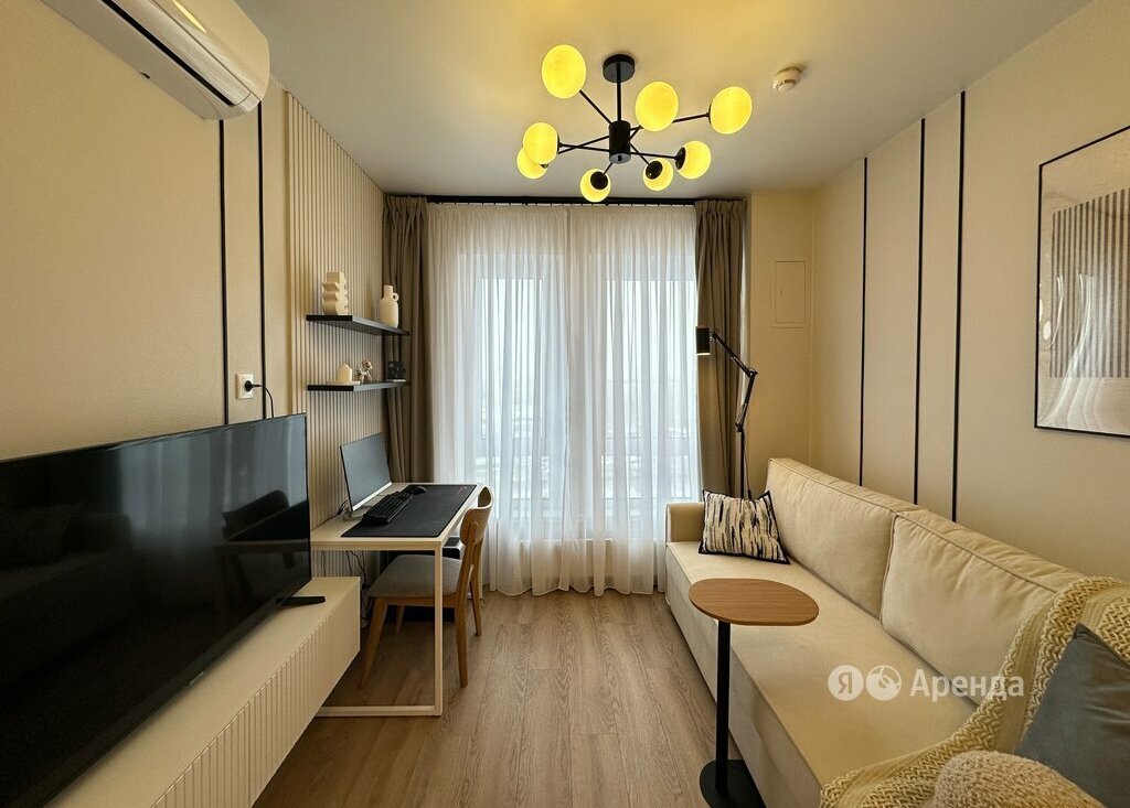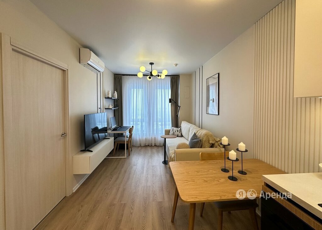 Сдаётся 2-комнатная квартира площадью 32 кв.м. с дизайнерским ремонтом на 20 этаже в 33-этажном доме на срок от 11 месяцев. Из техники есть: