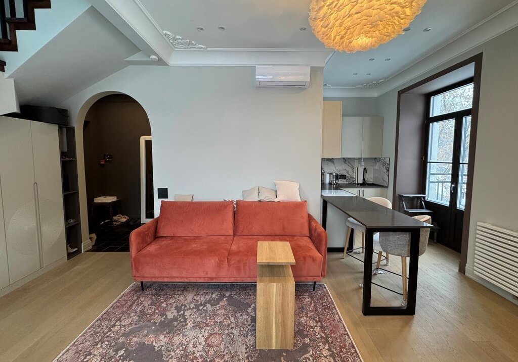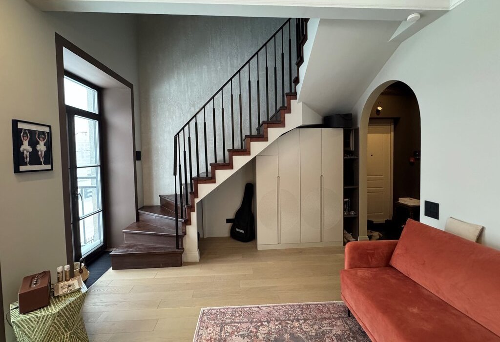 Сдается в аренду 2-комнатное двухуровневое пространство 55,8 кв.м с высокими потолками, панорамными окнами, полноценной спальней, двумя санузлами, оборудованное всей необходимой мебелью и техникой для вашего комфорта.