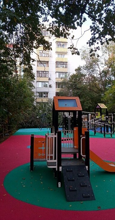 Летом проведена масштабная реконструкция дворовой территории. Во дворе много зелени, деревьев, новая детская площадка. Есть парковки. Окна квартиры выходят во двор, на разные стороны.