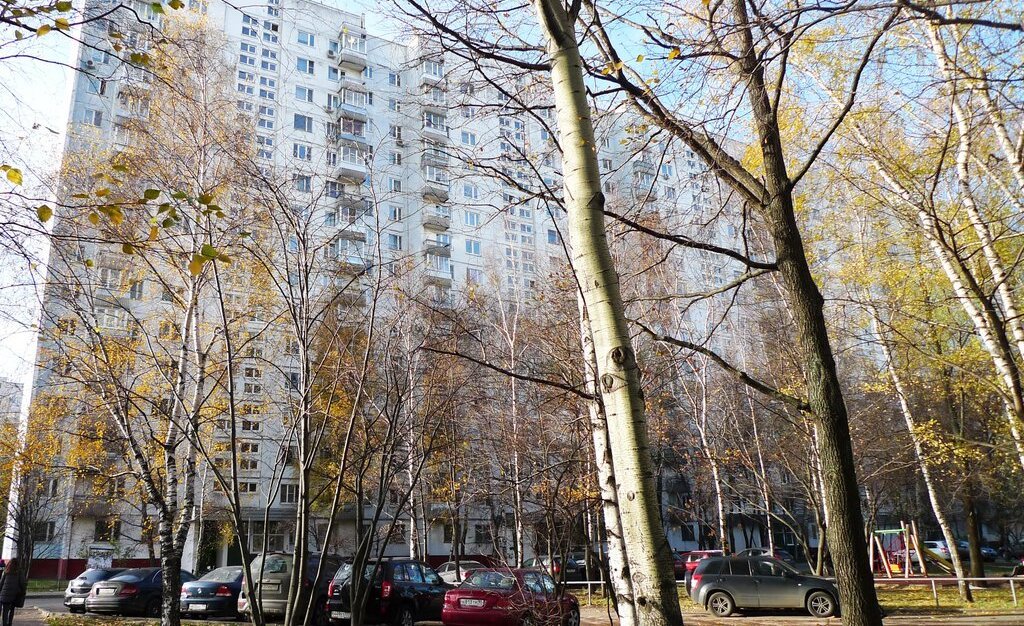 Зеленый район с развитой инфраструктурой. Рядом парковки у дома.