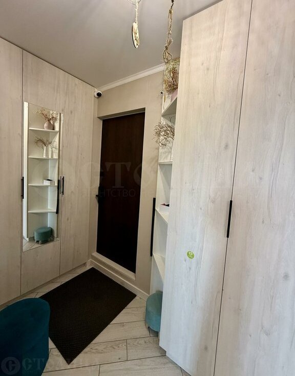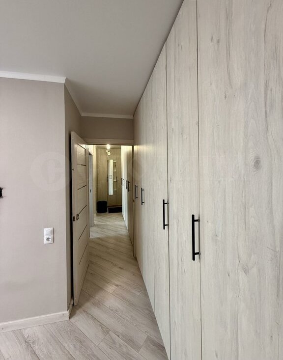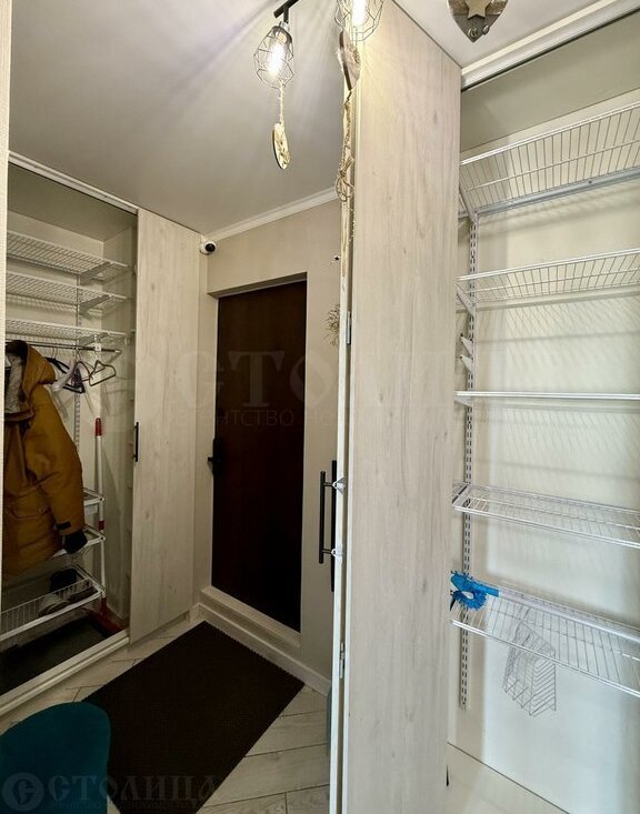 большое количество мест для хранения (вдоль всей стены квартиры огромный встроенный шкаф с гардеробной системой)