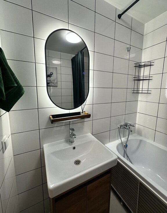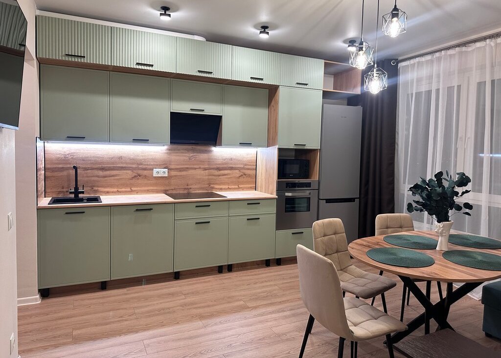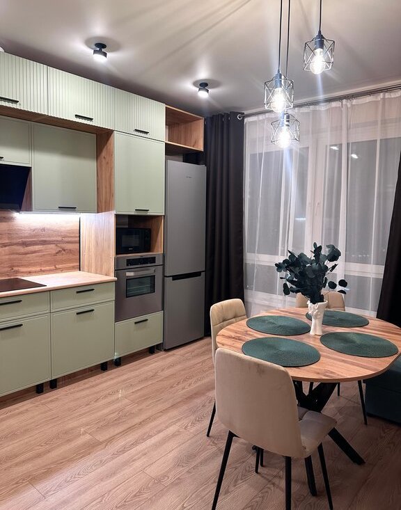 В квартире с большой любовью сделан ремонт и куплена вся необходимая техника: стиральная машина, большой холодильник, варочная панель, большая посудомоечная машина, вытяжка, духовой шкаф. На кухне также установлен фильтр для питьевой воды (удобный переключатель на кране, делали как для себя).