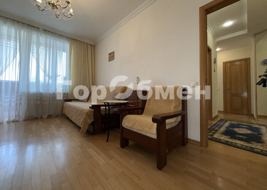 В квартире сделан качественный ремонт с использованием только лицензированных материалов. В комнатах эксклюзивная мебель из массива, паркет, авторские шторы. В гостиной обеденная группа с резными стульями, шкаф-купе, диван и кресло для отдыха, выход на остекленный балкон…