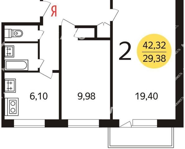 2-комнатная квартира: Москва, Бауманская улица, 27 (42.32 м²)