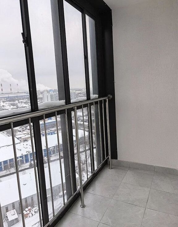 Балкон застеклён, с видом на город. В подъезде два пассажирских и один грузовой лифт. Парковка открытая во дворе. Курение и содержание животных запрещены. Проживание с детьми школьного возраста.