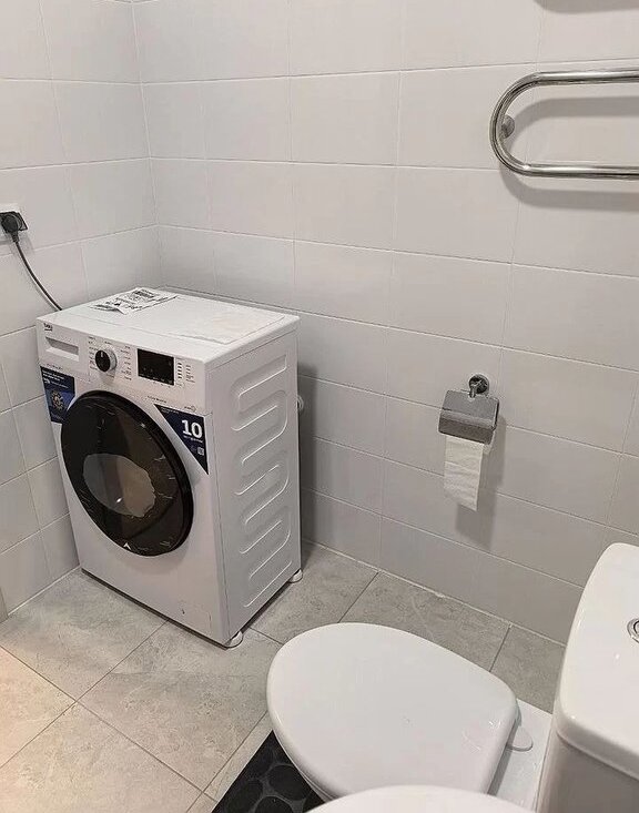 В квартире 2 раздельных санузла. Ванная комната оборудована стиральной машиной. Коридор просторный.