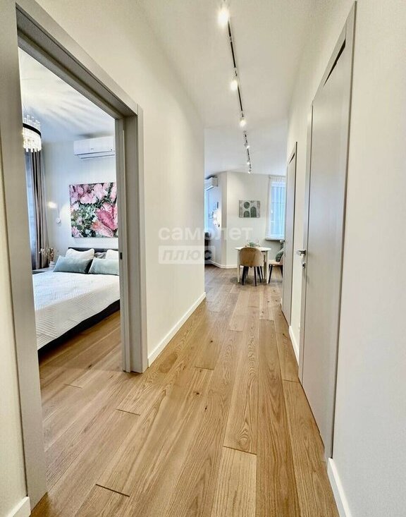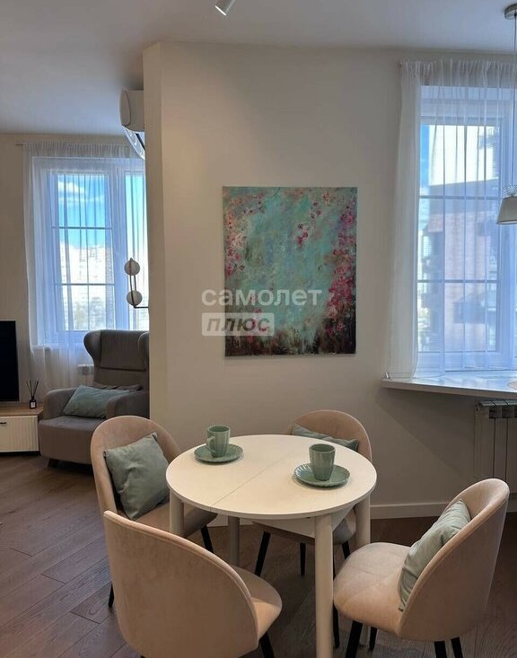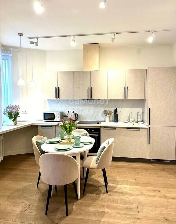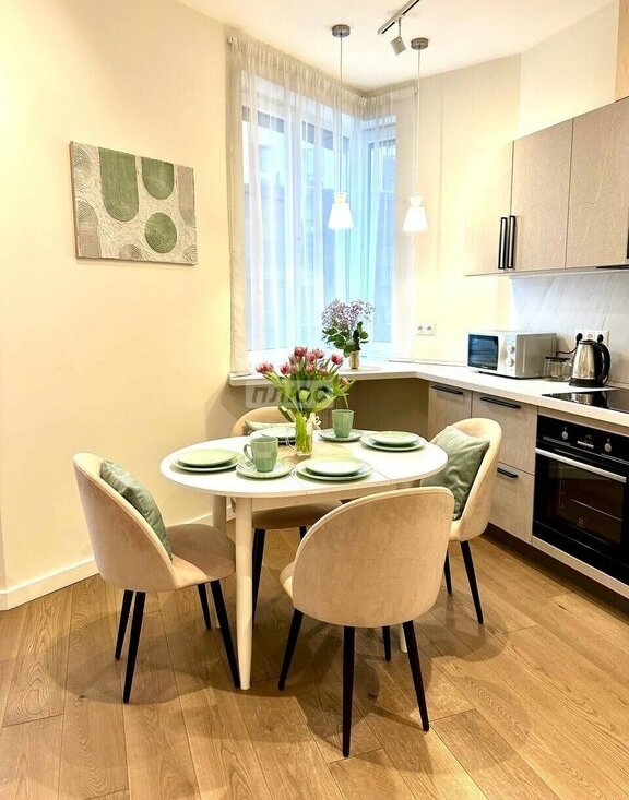 В квартире выполнен дизайнерский ремонт с использованием качественных материалов. Натуральная паркетная доска, продуманное освещение, техника премиальных брендов (Siemens, Liebherr), полностью укомплектованная кухня — включая посуду, кофемашину, посудомоечную машину и фильтры воды.