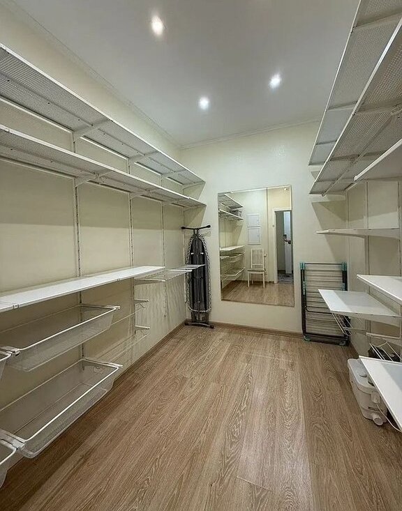 В пpoстopной гардеpoбной c бoльшим зеркaлoм Bы почувствуете удобство хранения вещей и свободу в создании своего ежедневного образа. Гладильная доска и утюг помогут приводить вещи в порядок.