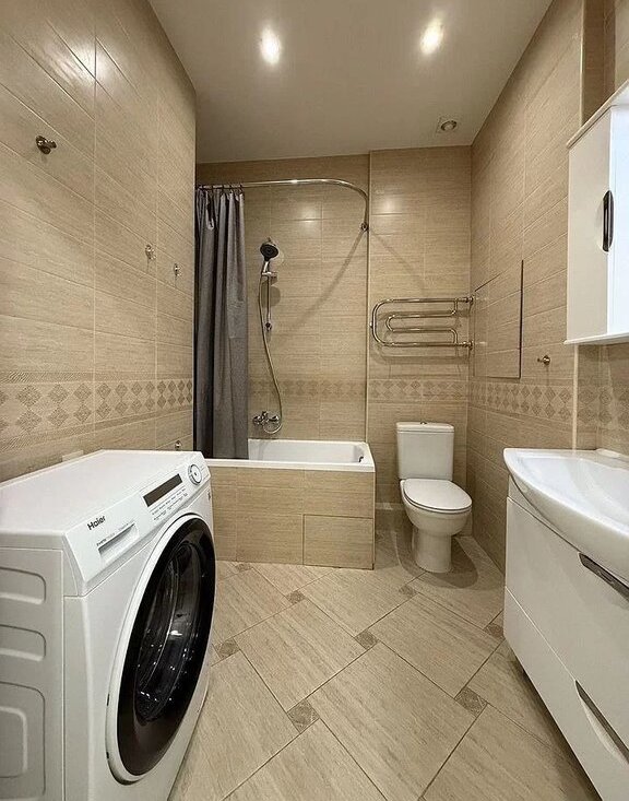 Два удачно спланированных санузла добавят Вам независимости. Стиральная машинка расположилась в большой ванной комнате.