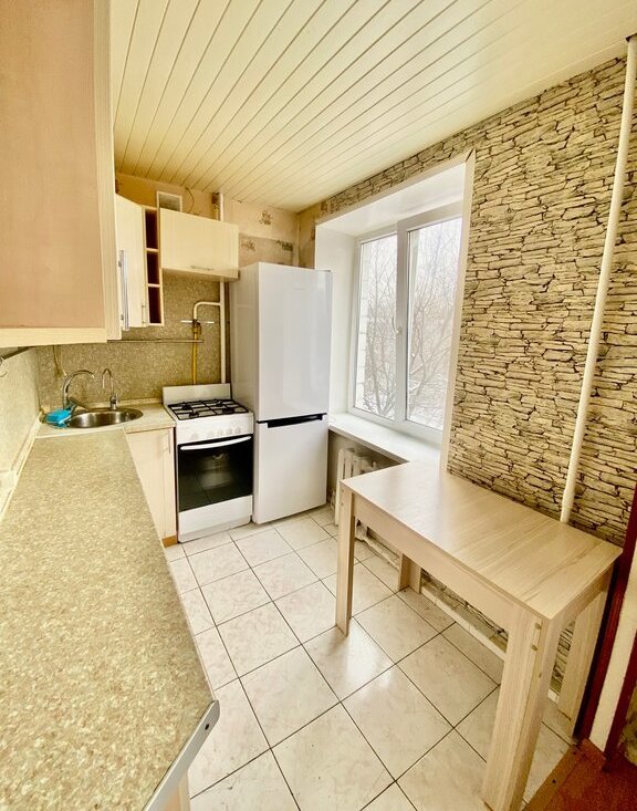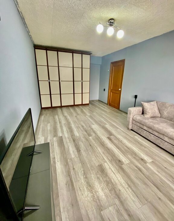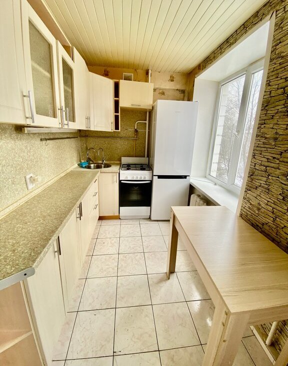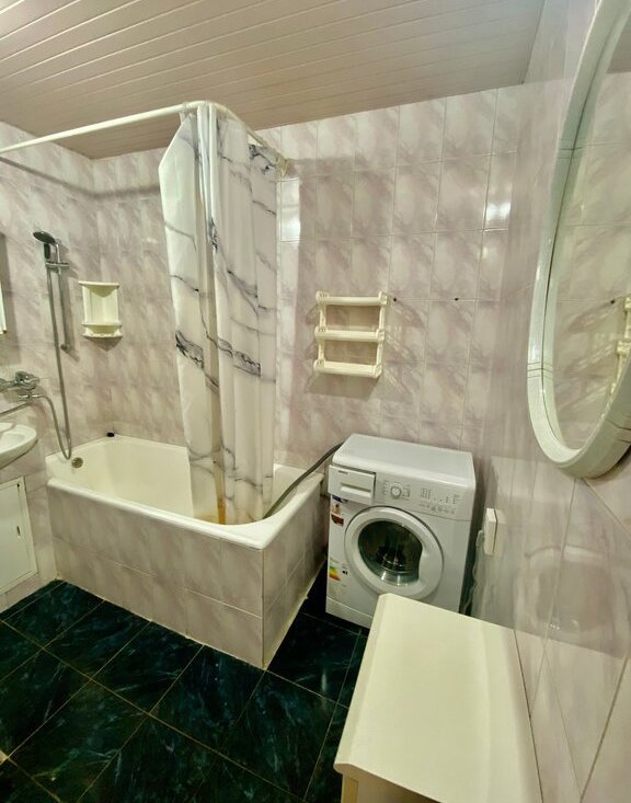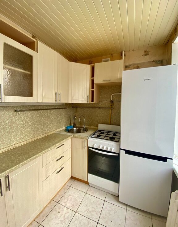 Холодильник новый,газовая плита,стиральная машина,телевизор,кухонный гарнитур,обеденный стол,диван (раскладывающийся),большой шкаф,тумбочки,прихожая,зеркала. Можно со своей мебелью.