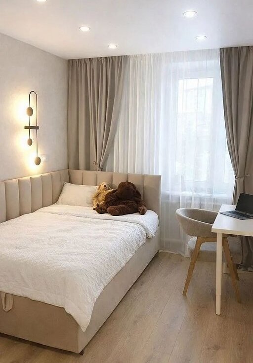 Кухня - гостиная с большим раскладным диваном и дизайнерской корпусной мебелью. Вторая комната с полуторной кроватью и рабочим местом. Надежная дверь с усиленным замком, отдельный тамбур, очень хорошие соседи. Окна во двор на солнечную сторону.