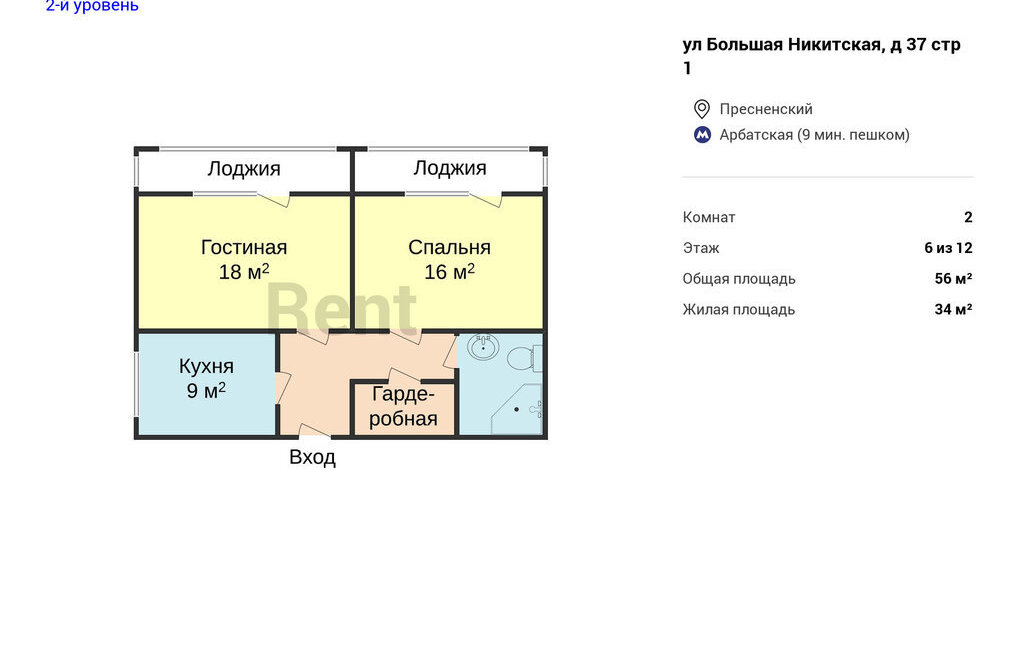 2-комнатная квартира: Москва, Большая Никитская улица, 37с1 (56 м²)