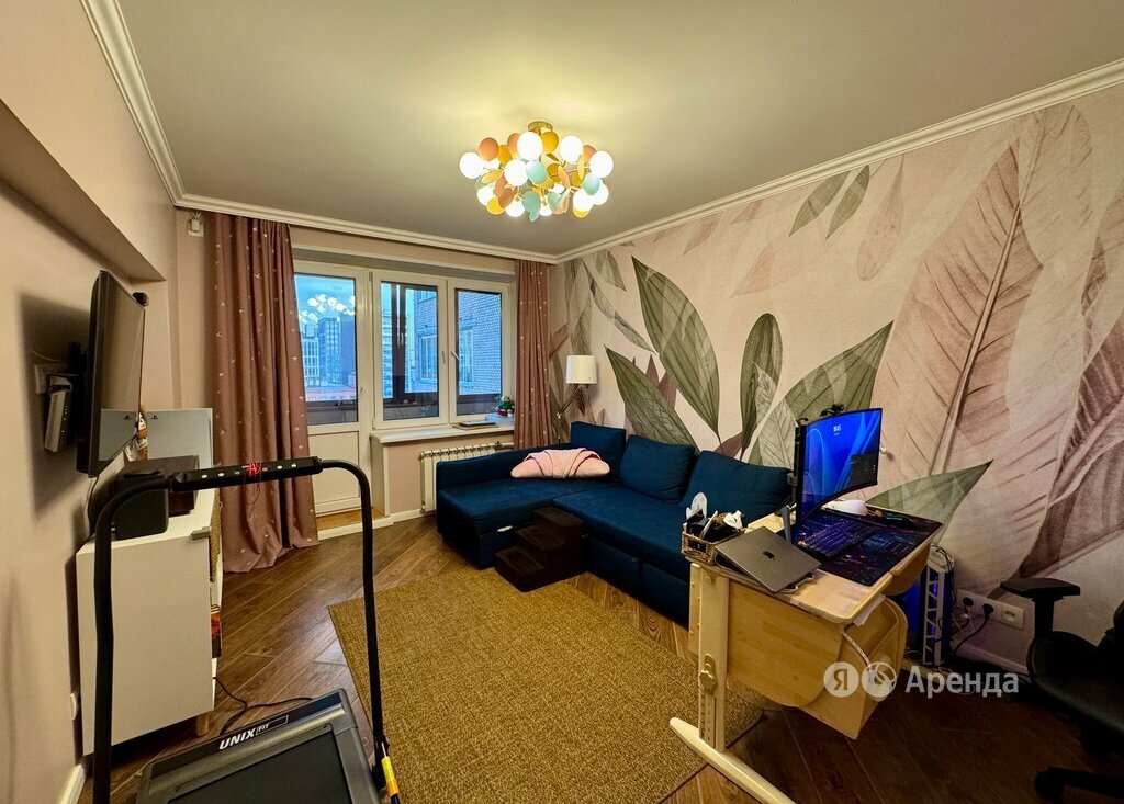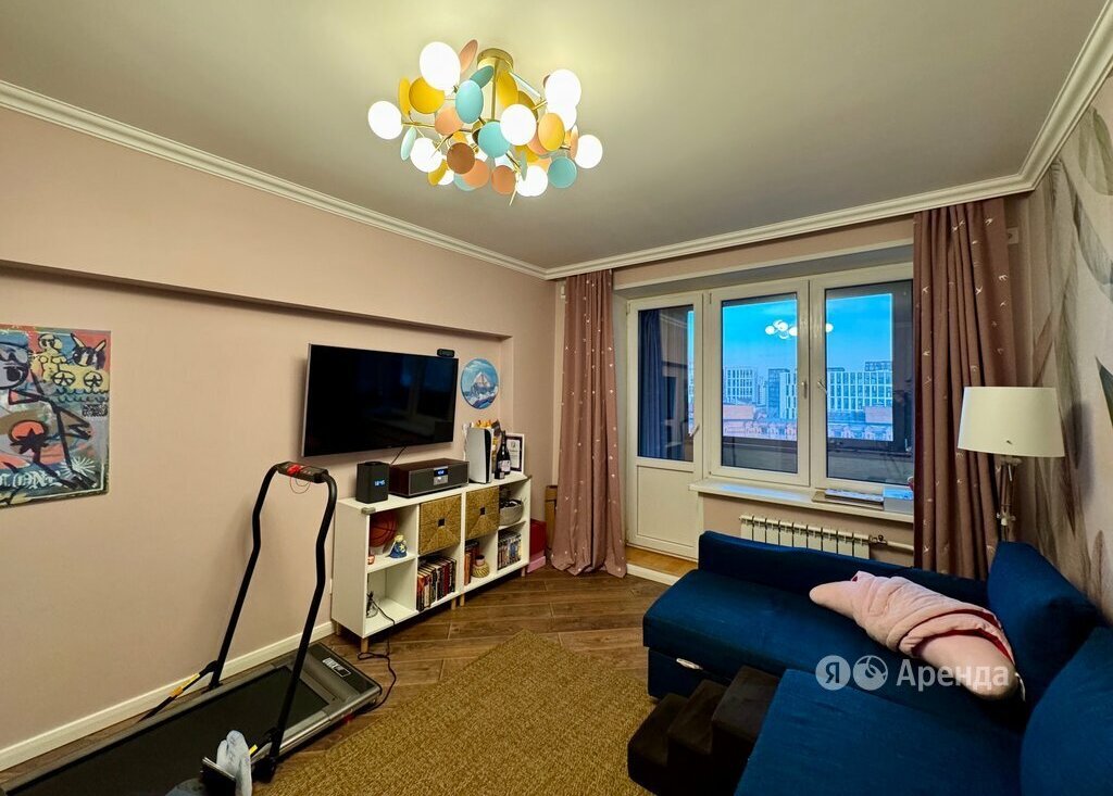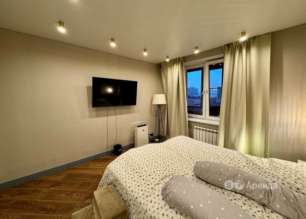 Сдаётся 2-комнатная квартира площадью 50 кв.м. с дизайнерским ремонтом на 9 этаже в 14-этажном доме на срок от 11 месяцев. Из техники есть: