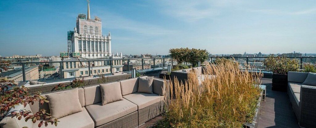 • Уникальный зеленый сад на крыше с зоной отдыха и панорамным видом на город.
