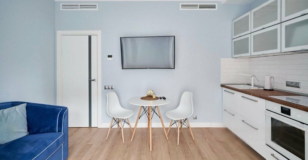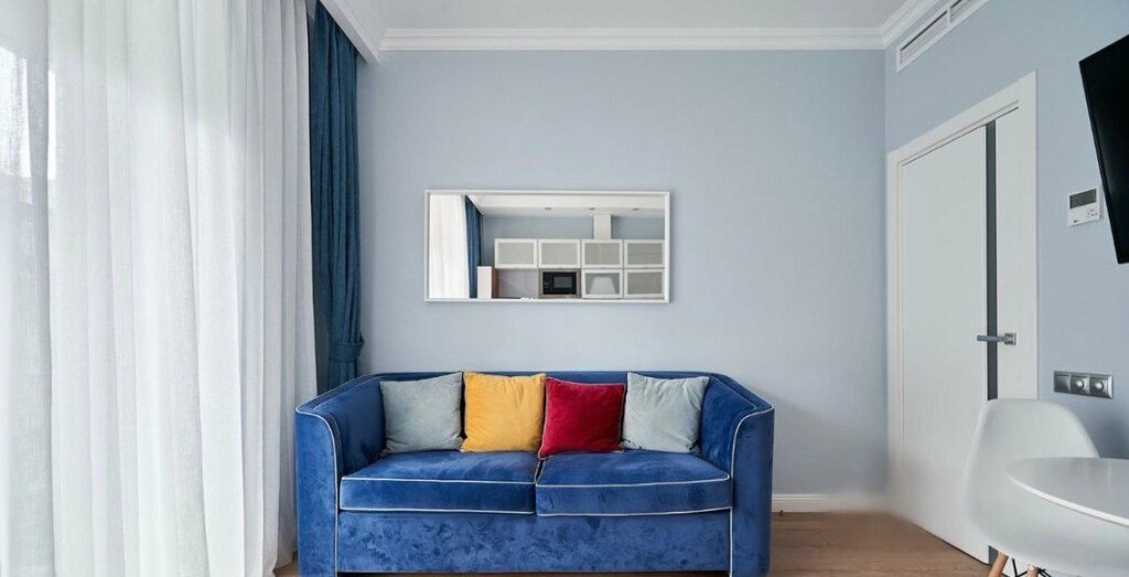 • Продуманная планировка: просторная кухня-гостиная, уединенная спальня, вместительная гардеробная, холл и ванная комната.