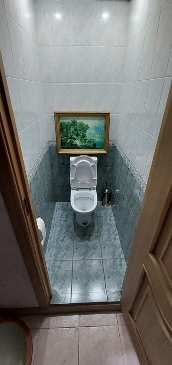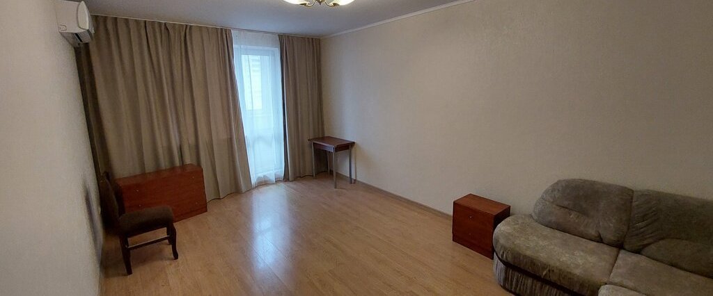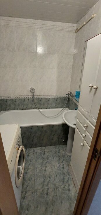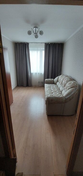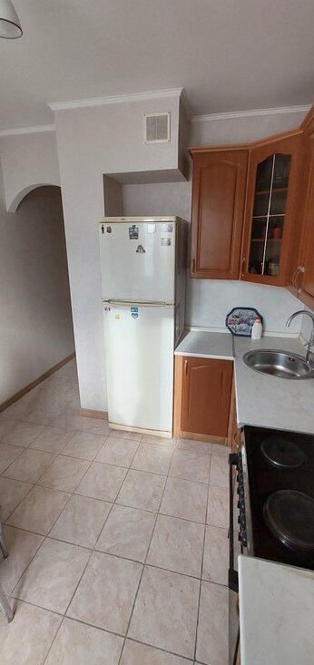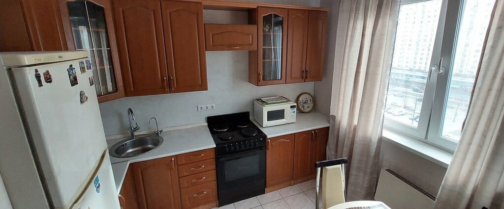 Кухня оборудована всем необходимым: холодильник, плита и микроволновая печь. Из гостиной выход на застекленную лоджию. Санузел раздельный.
