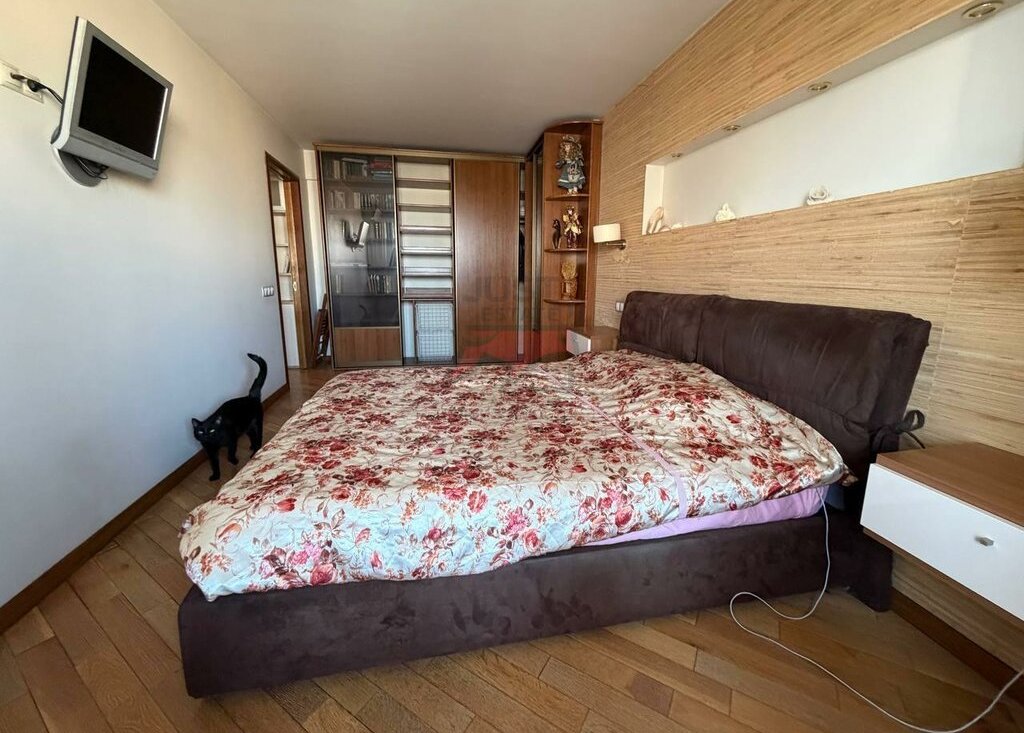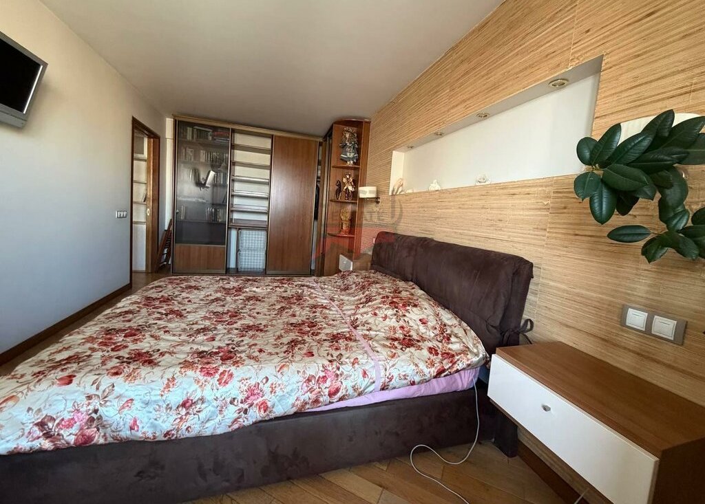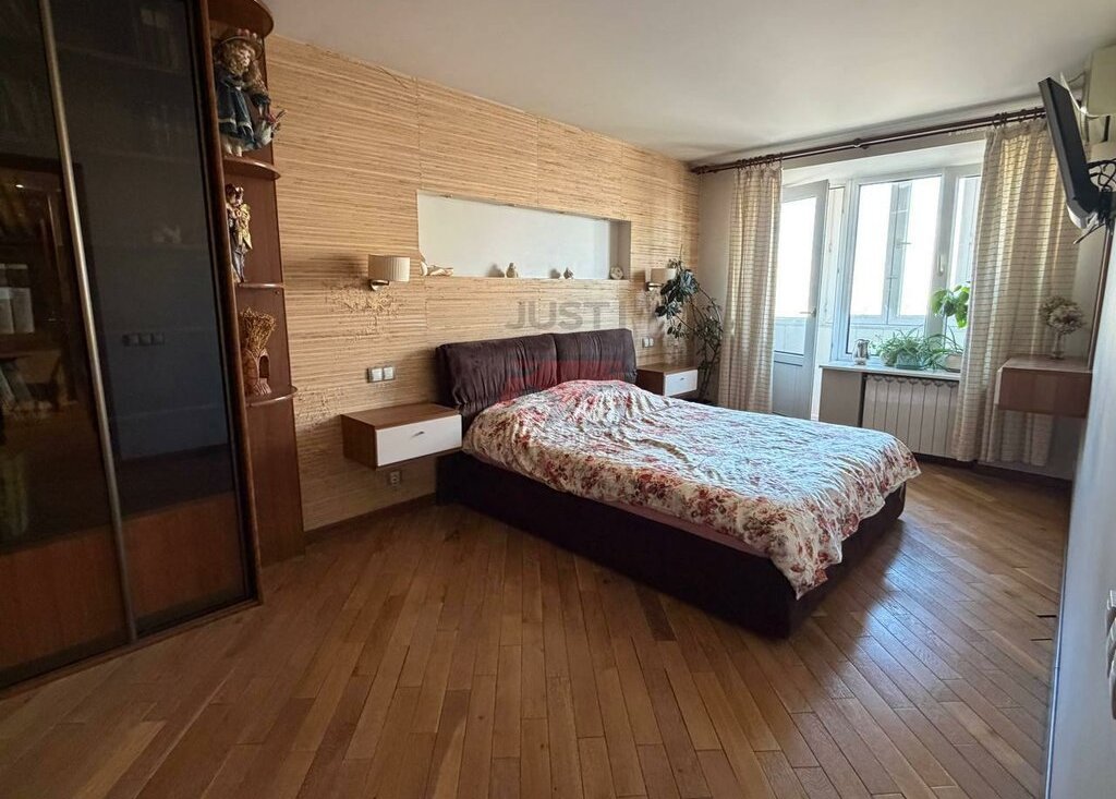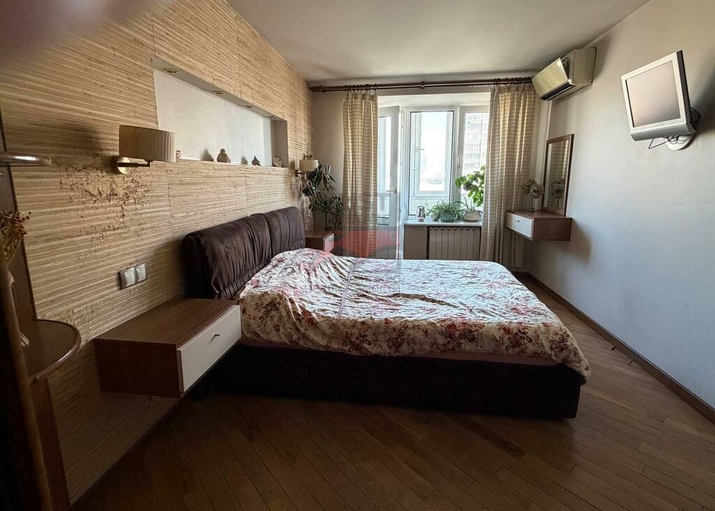 Просторная спальня совмещена с балконом, в квартире имеются 2 кондиционера, что помогает поддерживать приятный климат.