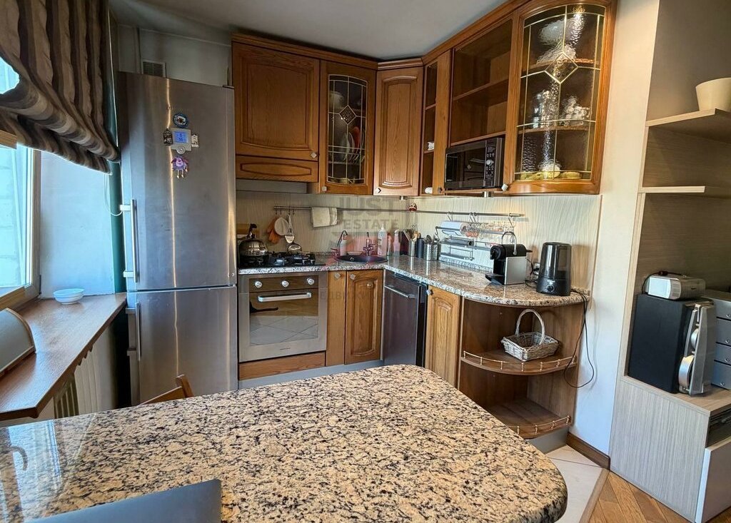 Имеется посудомоечная машина на кухне, вместительные шкафы и уютный уголок для обедов и ужинов.