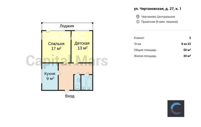 2-комнатная квартира: Москва, Чертановская улица, 27к1 (50 м²)