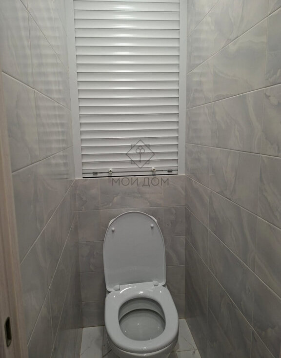 Санузел раздельный в плитке до потолка.