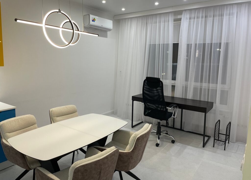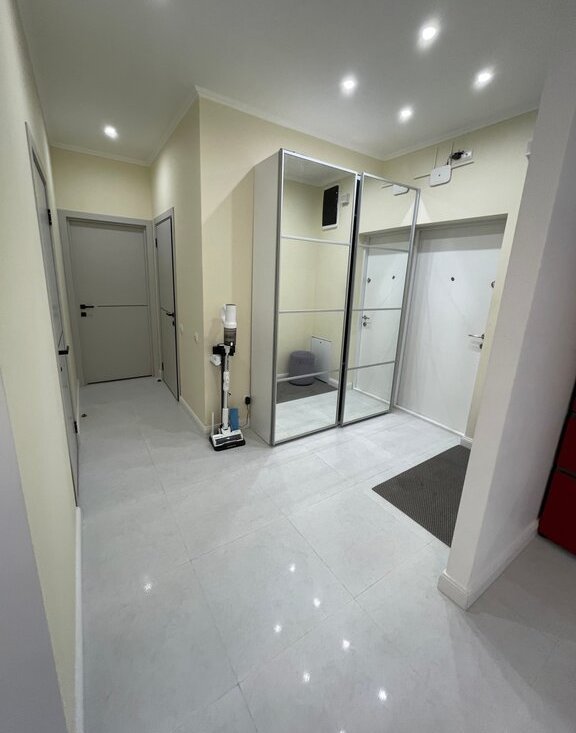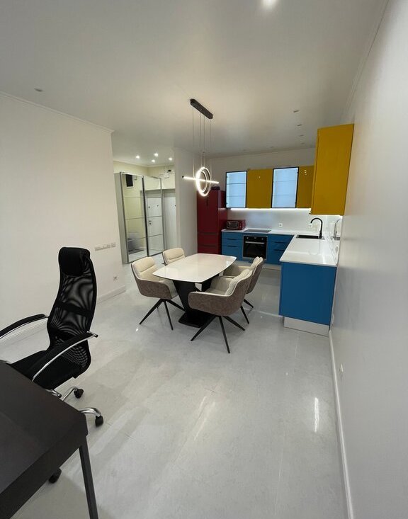 В квартире сделан качественный евроремонт, поэтому можно сразу заехать и жить с комфортом. Просторная кухня площадью 23 кв. м обставлена современной мебелью и оснащена всей необходимой техникой: кондиционер, холодильник, посудомоечная машина, стиральная машина с сушкой ,с двойной загрузкой ,телевизор. В квартире два совмещённых санузла, с душевыми кабинами. Окна выходят во двор, поэтому в квартире тихо и спокойно.