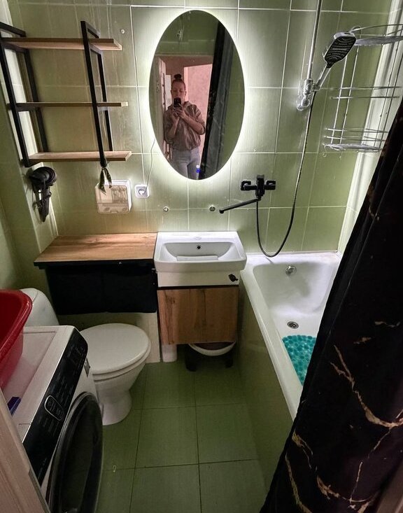 Всё остальное: ванна, стиралка, посудомоечная машина, балкон — на месте.