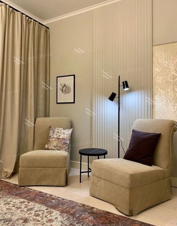 Интерьер в современном стиле, Лифт, Мебель на кухне, Мебель в комнате, Окна на улицу, Окна во двор,