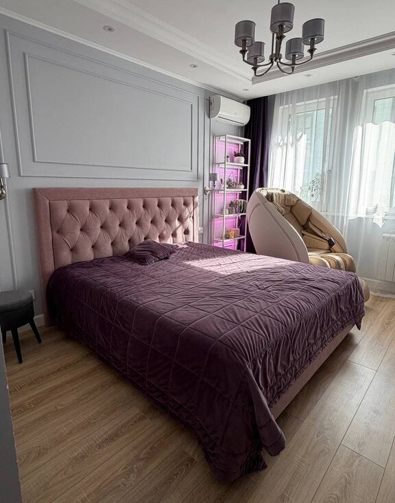 - изолированная спальня с интегрированной мебелью с кондиционером, бризером, телевизором, зеркалом с подсветкой, зонированное светодиодное освещение;