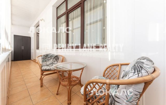 Недавно завершён качественный ремонт. Квартира полностью обставлена современной мебелью (диван и кресло - НОВЫЕ) и бытовой техникой высокого качества. Фасады кухни и межкомнатные двери изготовлены из отбелённого дуба. В спальне Итальянский спальный гарнитур с двухсторонним ортопедическим матрасом. В квартире установлены звуконепроницаемые стеклопакеты. Санузел оборужован качественной сантехникой от европейских производителей. Установлены: система кондиционирования в каждой комнате; теплый пол в санузле; интернет; бойлер; домофон. Имеется огромная, утеплённая, застекленная лоджия.