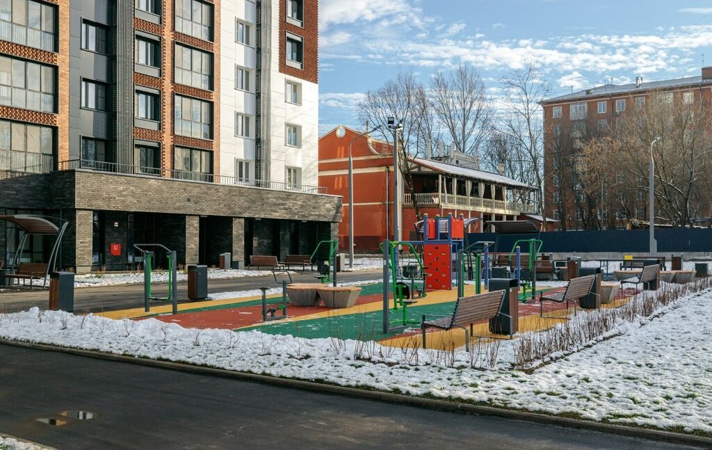 Детская и спортивная площадка, дома не впритык много пространства, всегда можно найти место для парковки. В доме есть подземная парковка.